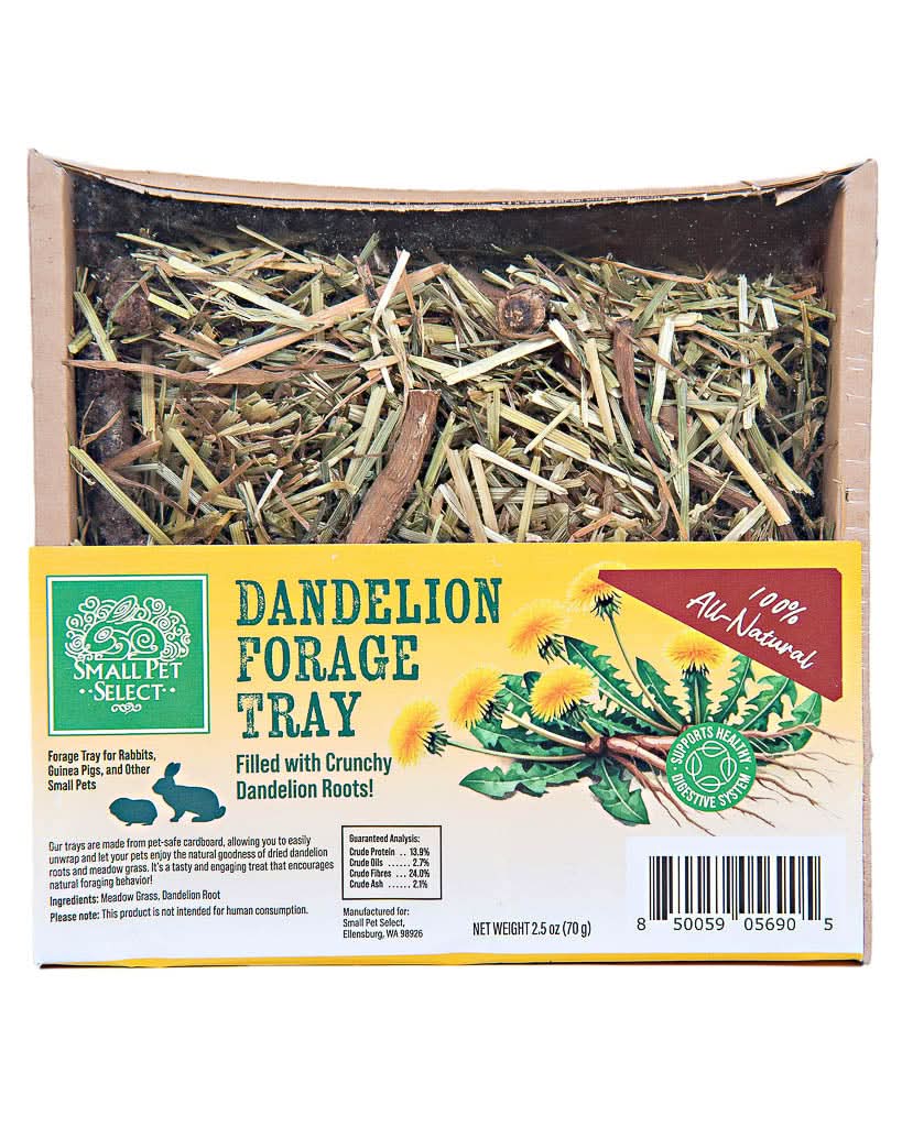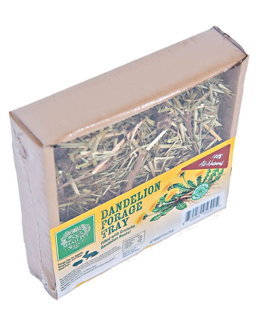 Small Pet Select Dandelion Forage Trays contain grazing grass which makes a fantastic addition to your rabbit's diet. The crunchy stems are great for maintaining tooth health and the high-fibre content is great for supporting a healthy digestive system. Our dandelion foraging tray is topped with crunchy dandelion root nibbles. Dandelion roots are a fantastic natural product, perfect for keeping your bunnies teeth clean, trim & healthy.