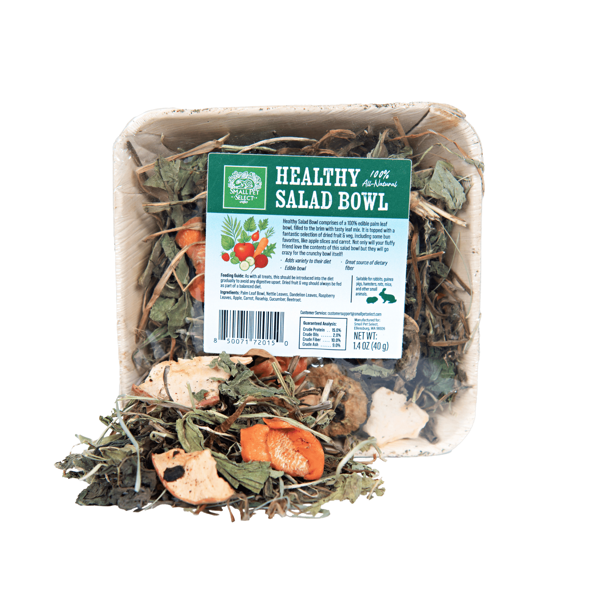 Made from 100% natural ingredients with no additives or fillers, this treat supports a healthy, balanced diet while keeping your pet happily engaged. The Healthy Salad Bowl is suitable for rabbits, guinea pigs, hamsters, rats, mice, and most other small animals. As with all treats, introduce it gradually to avoid digestive upset and serve it as part of a varied diet.