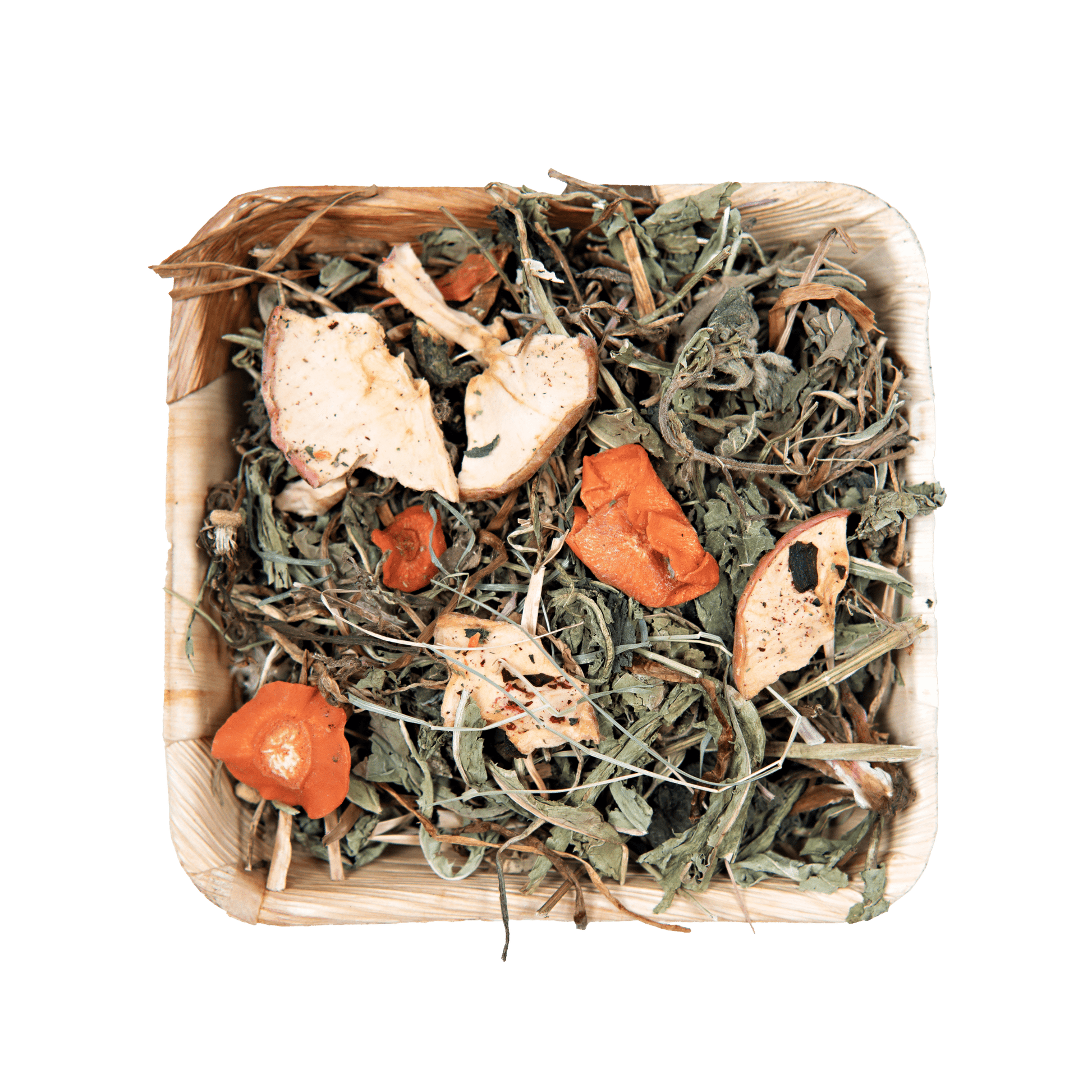 Inside, you’ll find a blend of nettle, dandelion, and raspberry leaves, topped with tasty favorites like apple slices, carrot, cucumber, beetroot, and rosehip. Once your furry friend has enjoyed the leafy mix, they can move on to the bowl itself, because yes, it’s completely edible too!