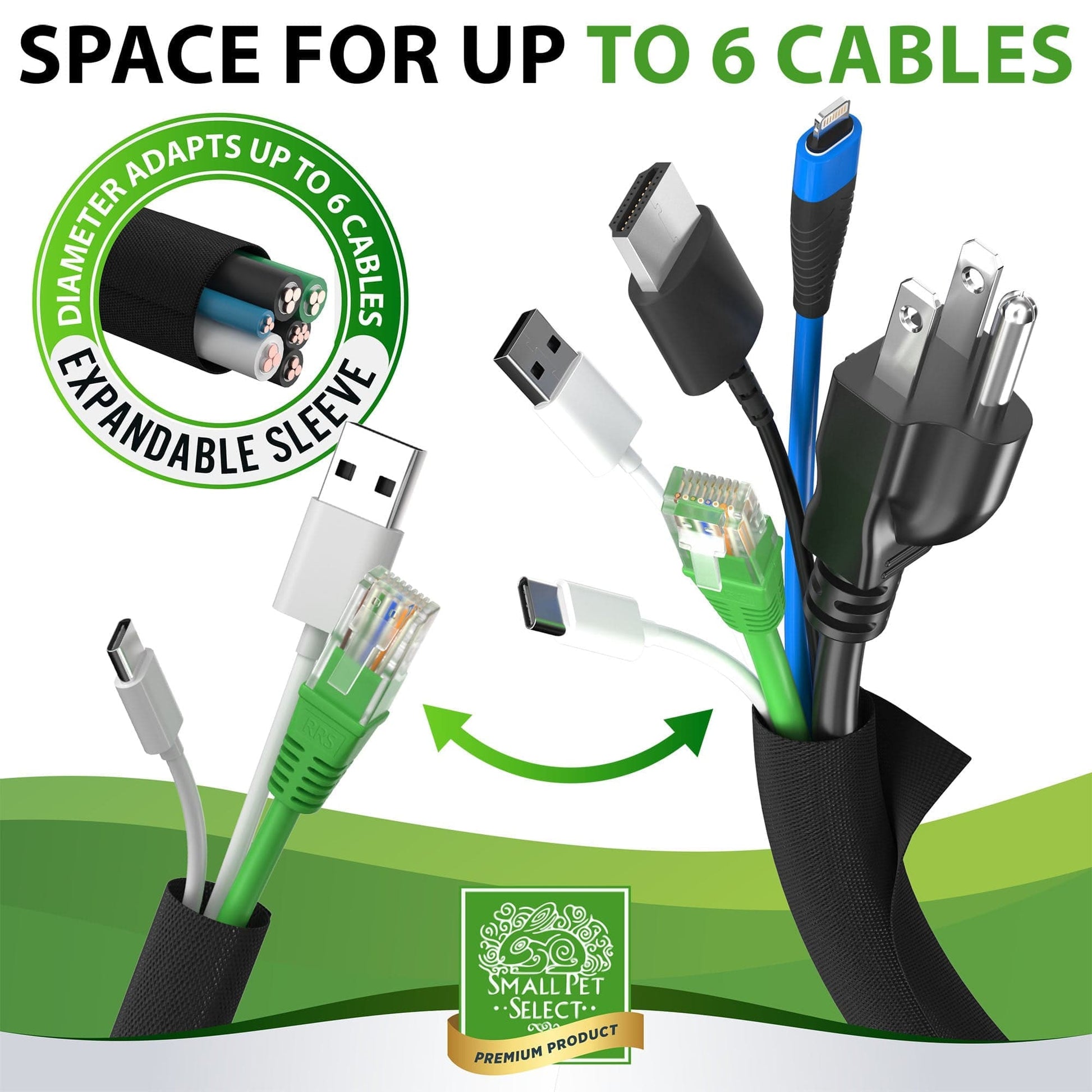 - EXPANDABLE SLEEVE: A convenient side slit allows you to easily slide additional cords in to keep up to six cables safe and organized. The wire wraps expand and contract to fit your organization needs perfectly whether you are protecting a single phone charger or a bundle of cords under a desk.