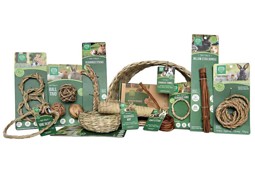 Includes one of each Tiny Paws Toys: Vine Heart, Seagrass Sticks, Curly Q Stick, Willow Bundle, Seagrass Bowl, Ball Trio, Seagrass Mat, Seagrass Chain, Seagrass Ring, Seagrass Twist, Drawer Puzzle, and Seagrass Tunnel.